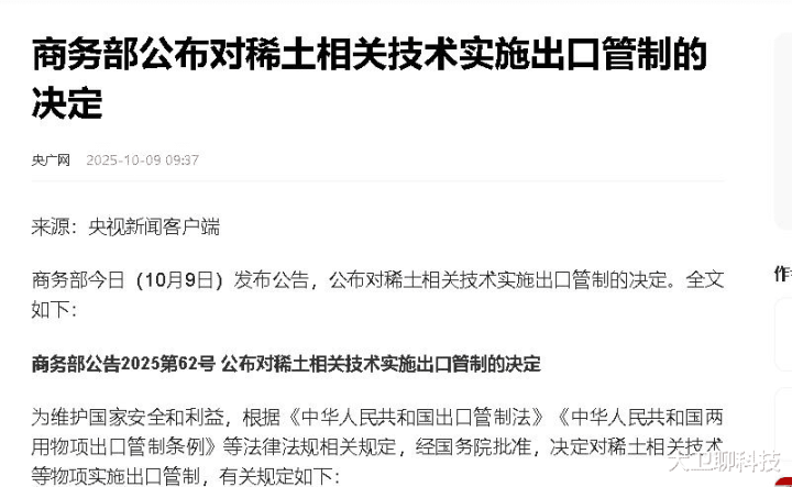 在美升级对华制裁后,中国也甩出了一张“稀土牌”进行反制。而根据规定,任何使用了中国稀土技术,在海外制造生产或含有稀土成分达到以及超 0.1% 的产品,出口的每一个订单,都需要报备且等待审批。